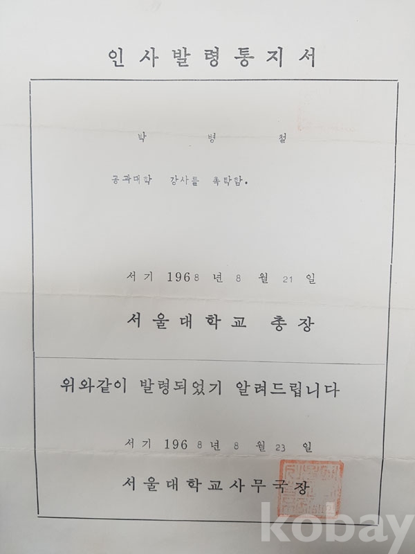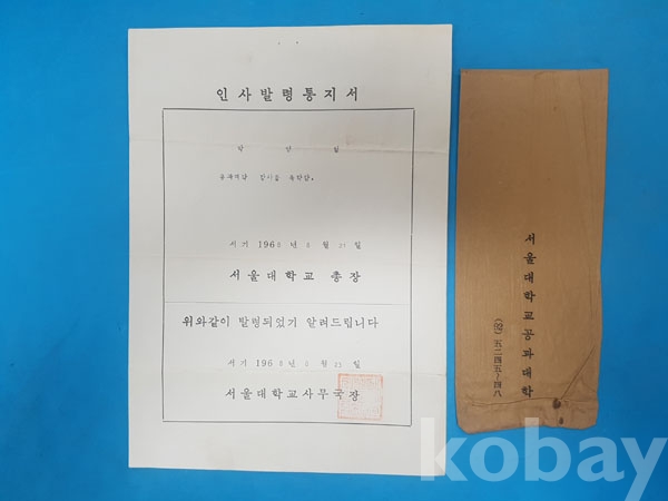 **** 1968년 서울대학교공과대학 인사발령통지서, 공과대학 강사촉탁