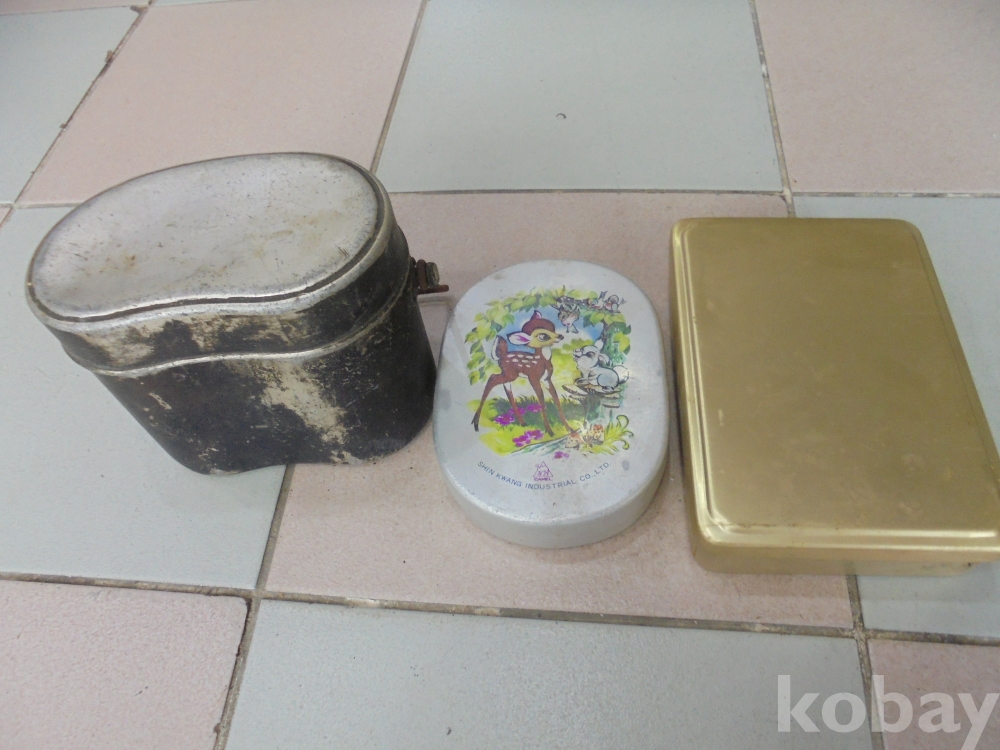 하트모형에 손잡이달리고 반찬통있는 늄무로만든 오래된 군대항구와 성인용 4각늄무 도시락1점과 아동용그림들어간 타오형 도시락1점 총3점