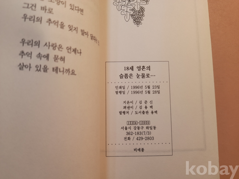 김준신 시집 18세 영혼의 슬픔은 눈물로