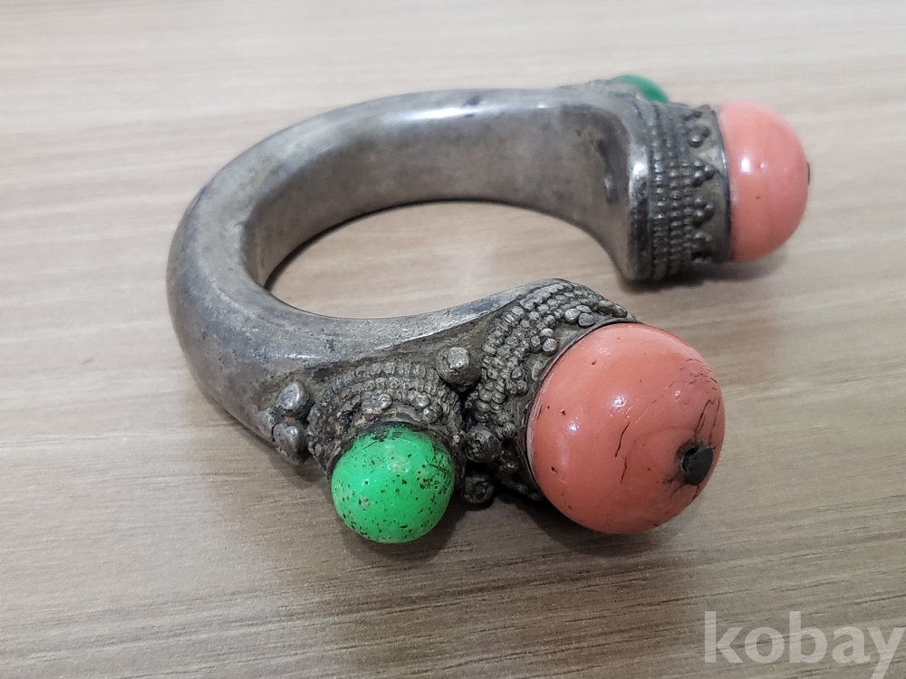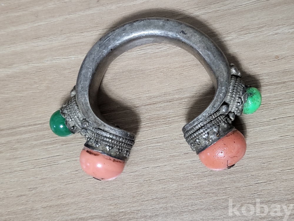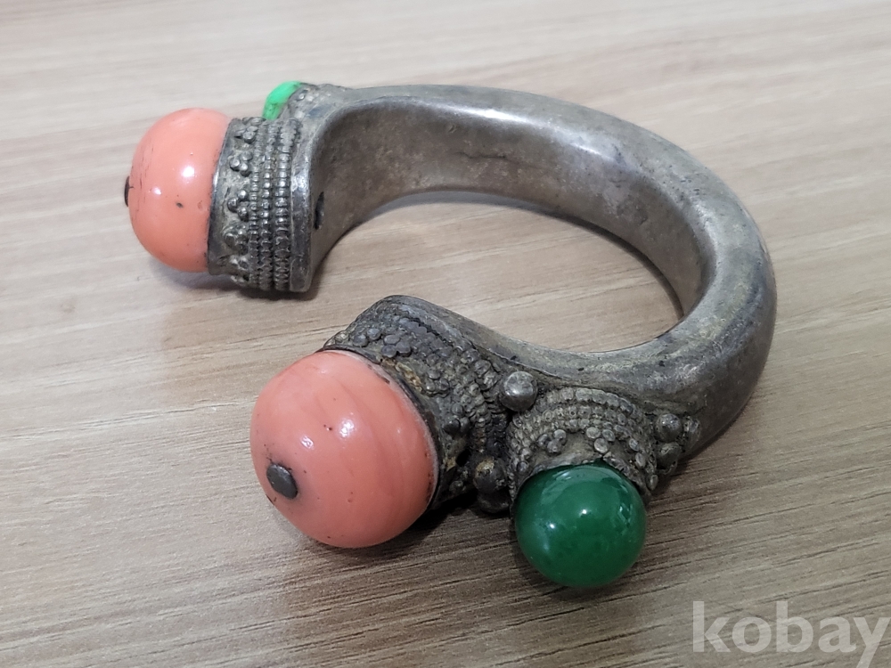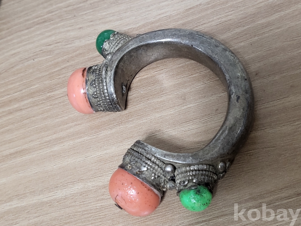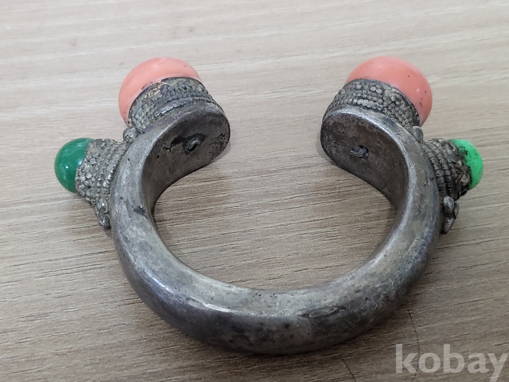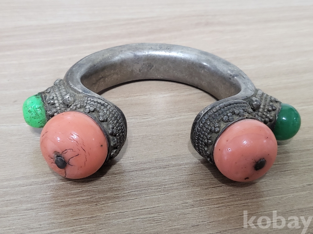 19세기 중국서역과 티벳지역의 전통 보석장식 순은 뱅글팔찌입니다.