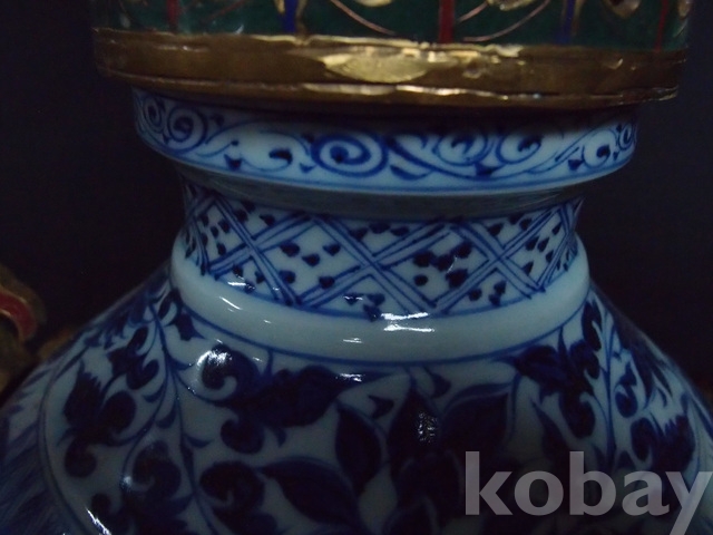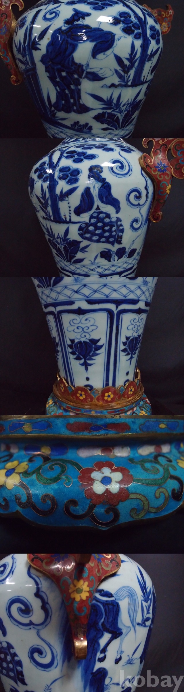 c-155.엄청큰 황동칠보로 장식된 황실청화백자인물도 장식품