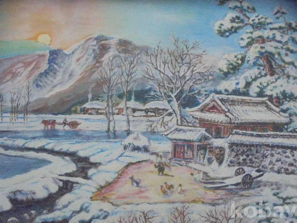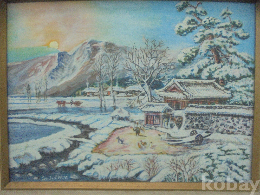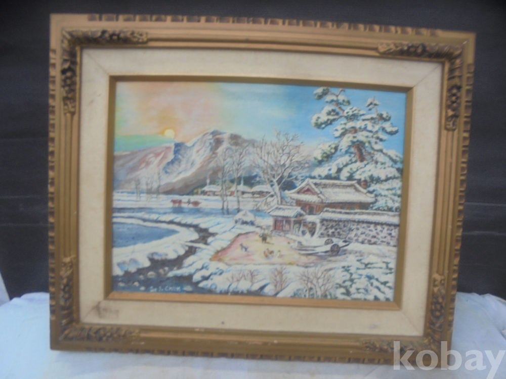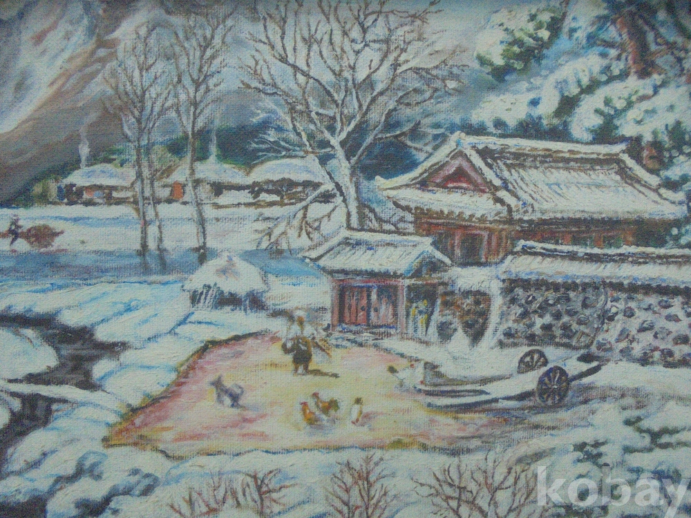 고향풍경이연상대는 실경같은 유화입니다
