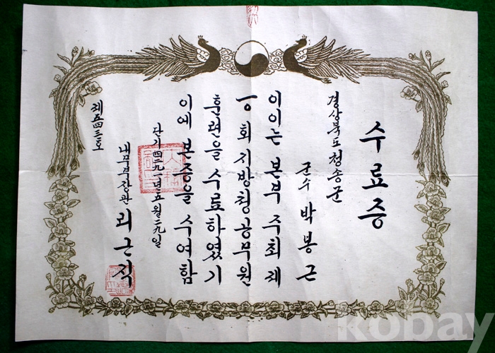 (상장 및 졸업장) 1958년 제10회 지방청공무원훈련 수료증