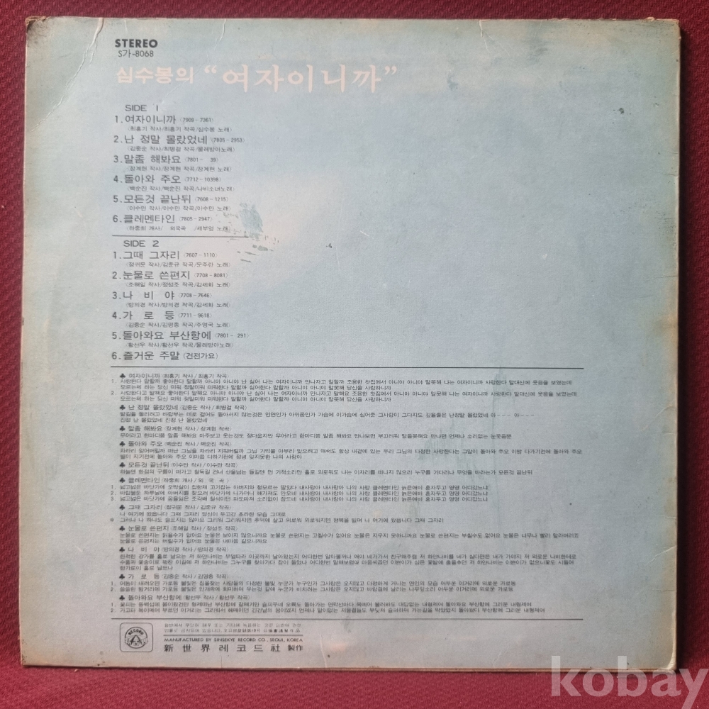 자켓상태 | EX : 약간의 마모, 모서리 찢김 존재 | 음반상태 | EX : 재생에 영향 없는 가벼운 기스 존재 | 발매정보 | 초반 | 가사지여부 | 무 |