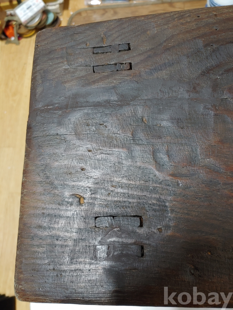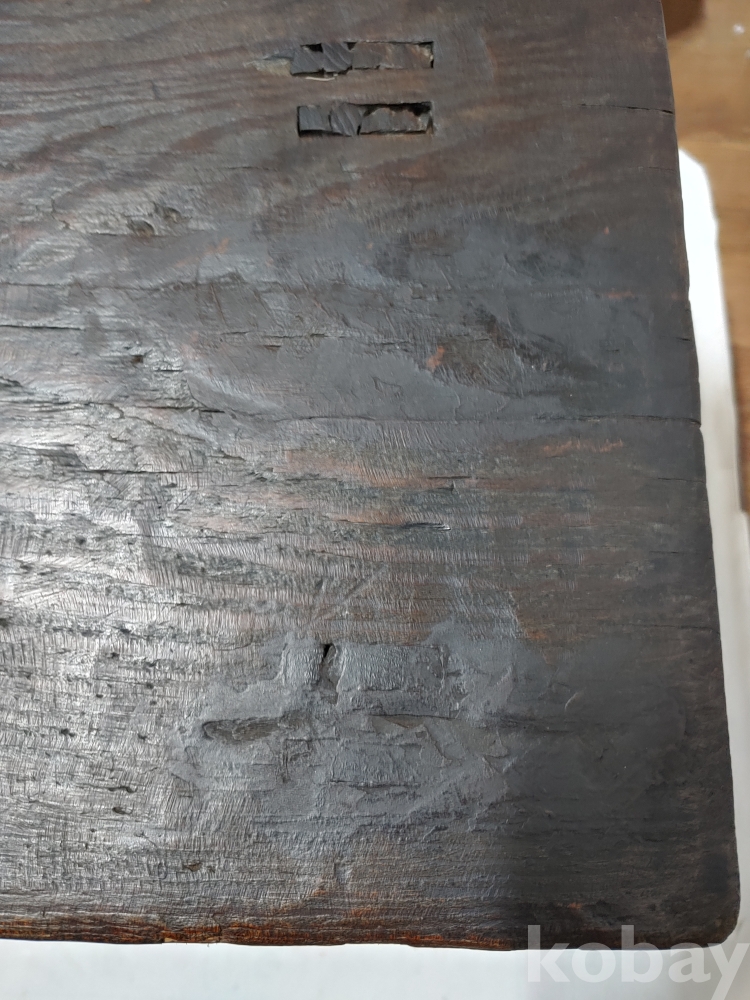상판과 다리의 윗부분의 한곳에 유가 있으며 상판의 모서리 한곳에 좀친부분이 있어서 마모현상이 있으오니 참고로 하시고 신중한 입찰을 부탁 드립니다