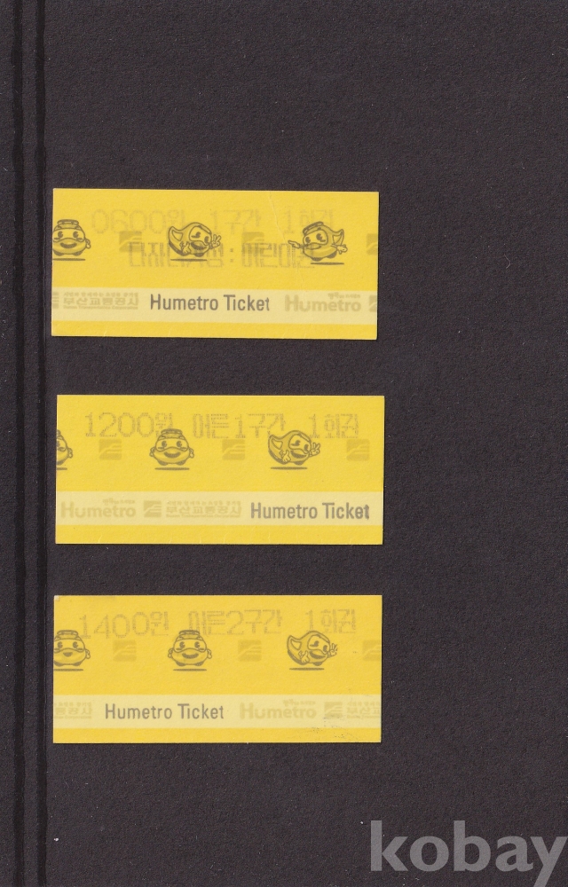 - [기차, 전철, 버스 승차권 모음展] - 부산 도시철도 휴메트로 어린이/ 어른1구간/ 어른2구간 승차권 3종