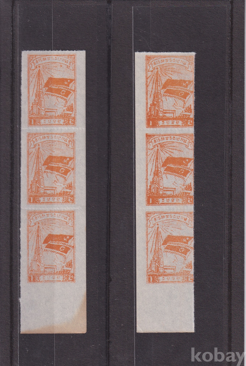 [윗동네 미사용 우표 모음展] - 8.15해방 5주년 기념 기념비 1원(3장) 세로 페어 2장 일괄