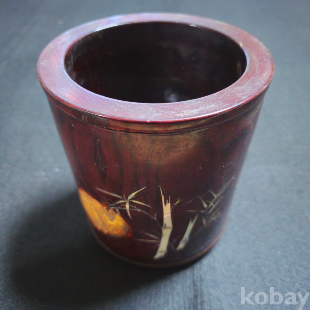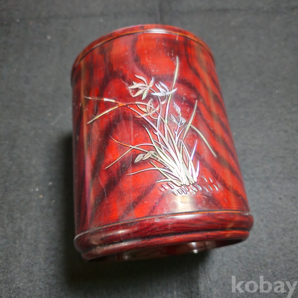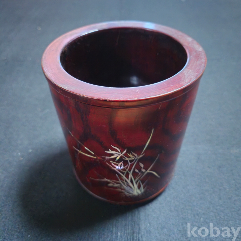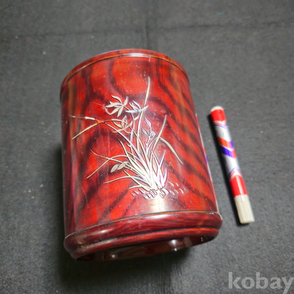 (((근현대사자료/붓통))) 오래전 대나무와 蘭아자개로 되어있는 비교적 큼지막한 나무붓통