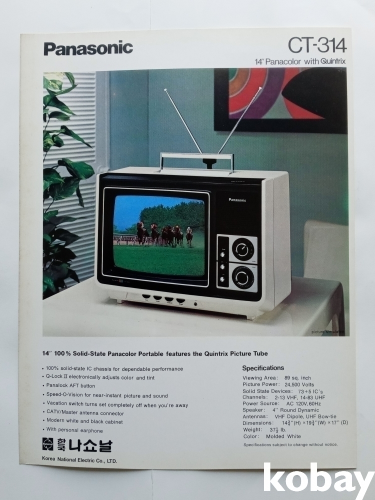 (추천) 70년대 한국내셔널 Panasonic CT-314 컬러 TV 카달로그