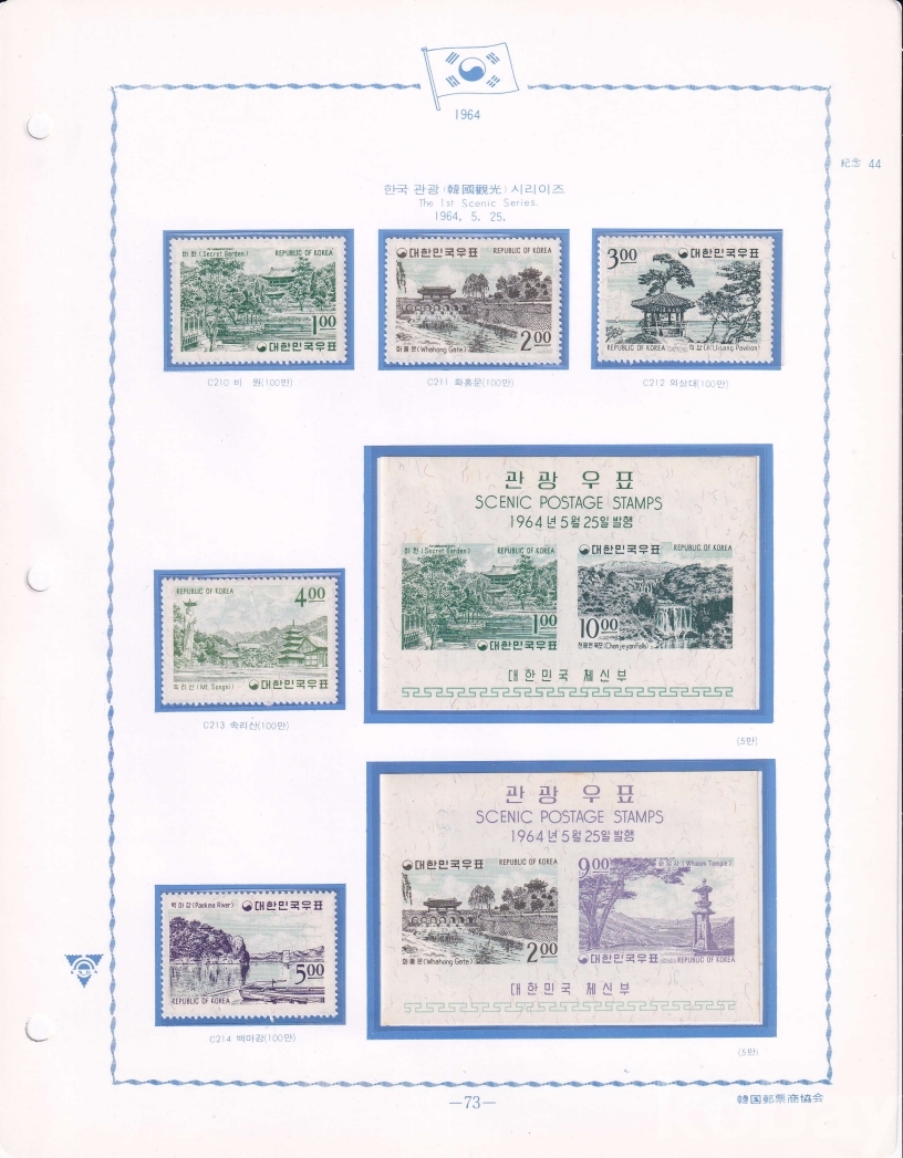 - 한국우표앨범 제2권 73 페이지(완성본)을 보내드리겠습니다.