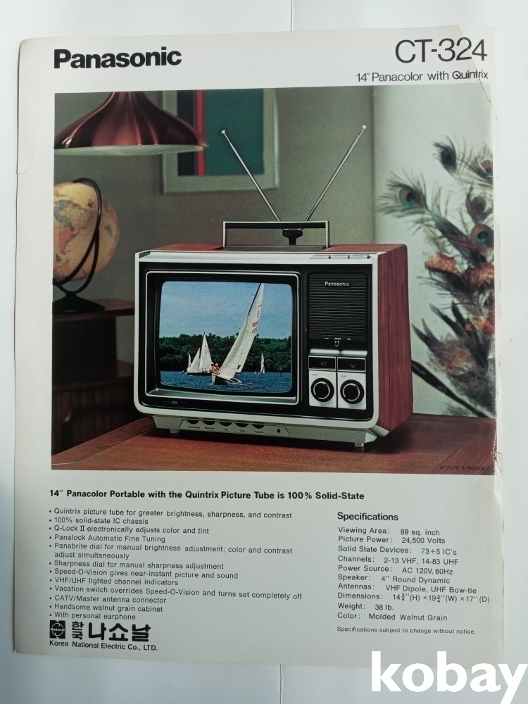 (추천) 70년대 한국내셔널 Panasonic CT-324 컬러 TV 카달로그