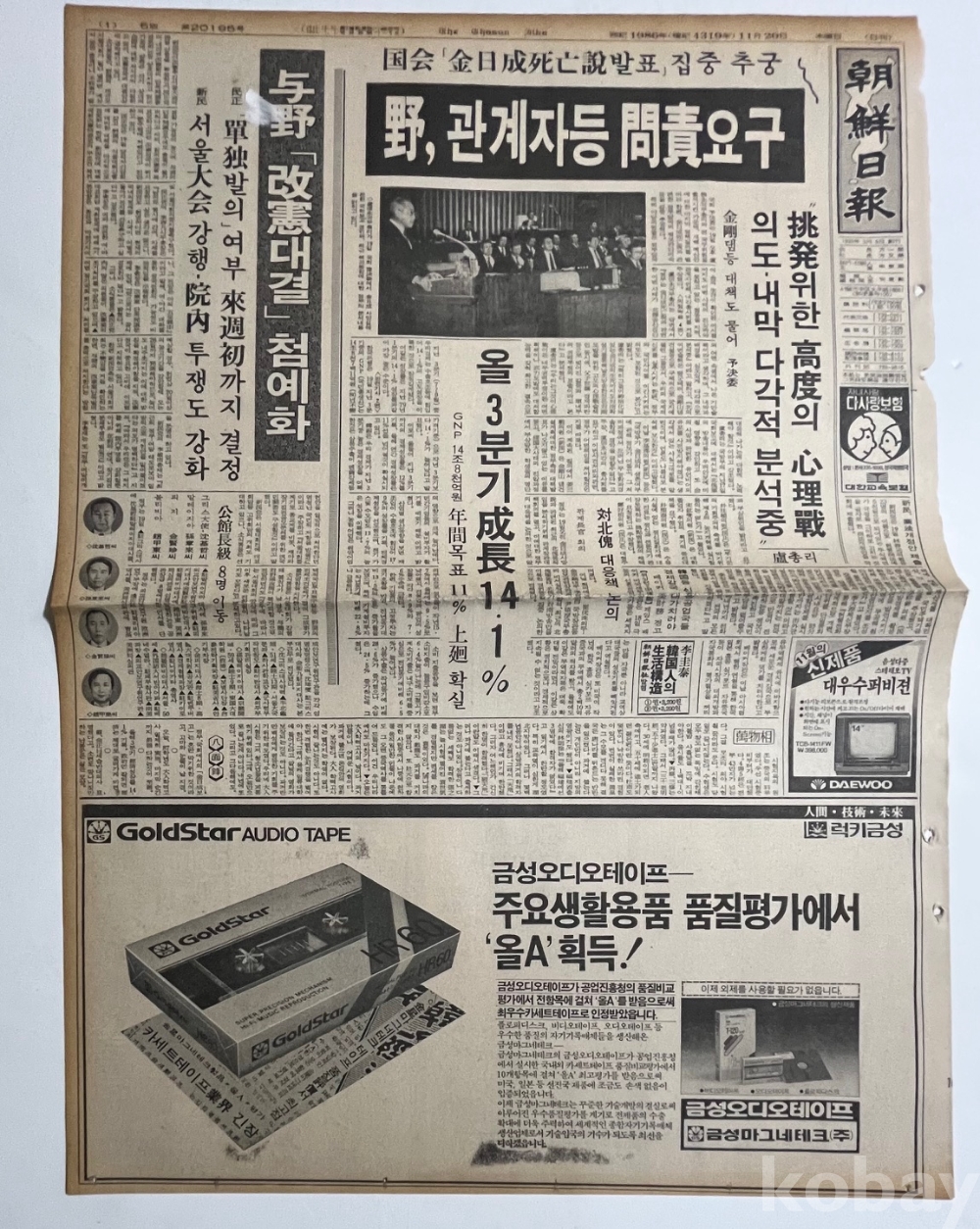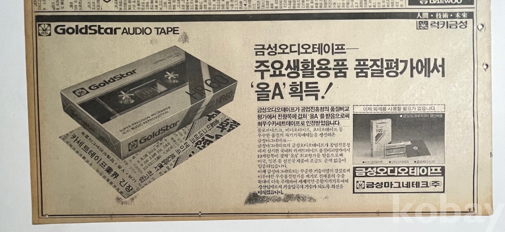 금성 오디오테이프 광고가 실린 1986년 조선일보 낱장입니다.
