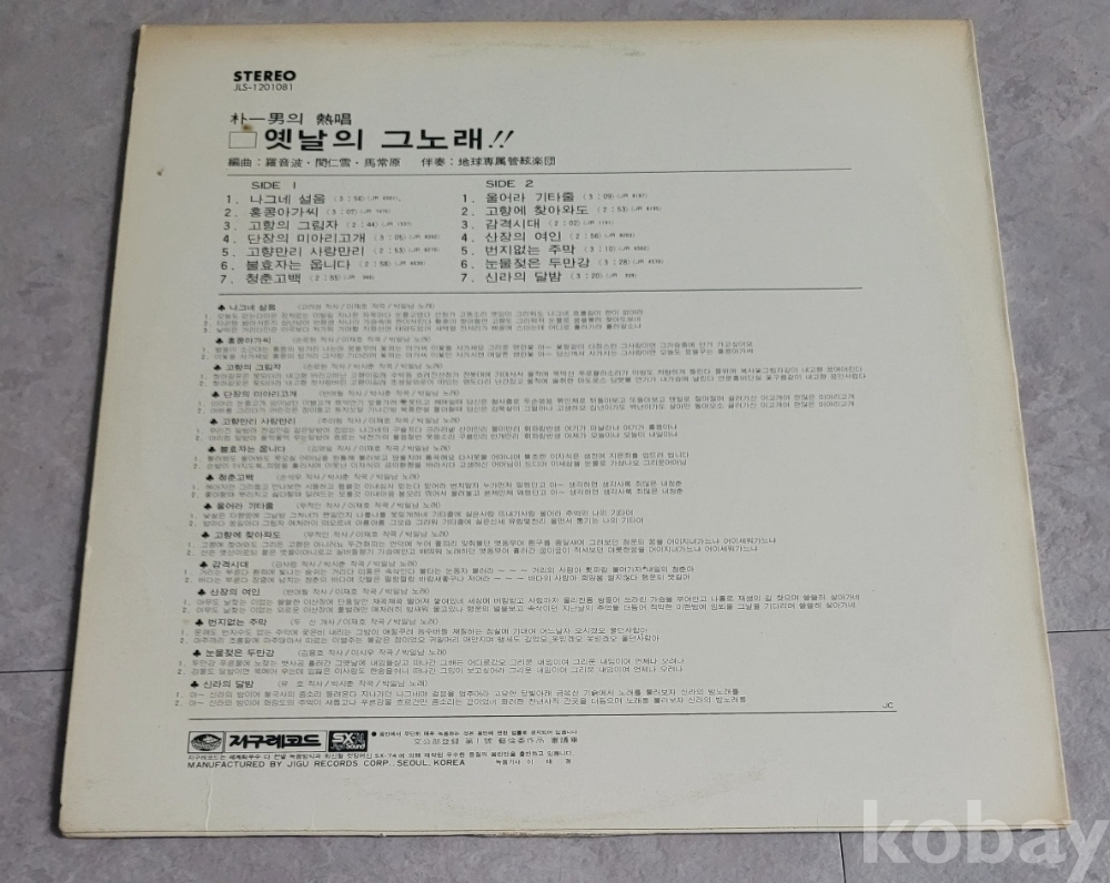 | 자켓상태 | EX : 약간의 마모, 모서리 찢김 존재 | 음반상태 | EX : 재생에 영향 없는 가벼운 기스 존재 | 발매정보 | 초반 | 가사지여부 | 무 |