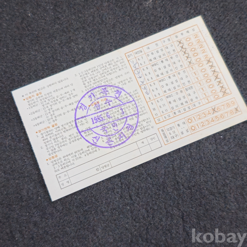(((프로야구자료/야구복권/호돌이))) 1985년 야구복권 (제11회) (롯데 김용희)