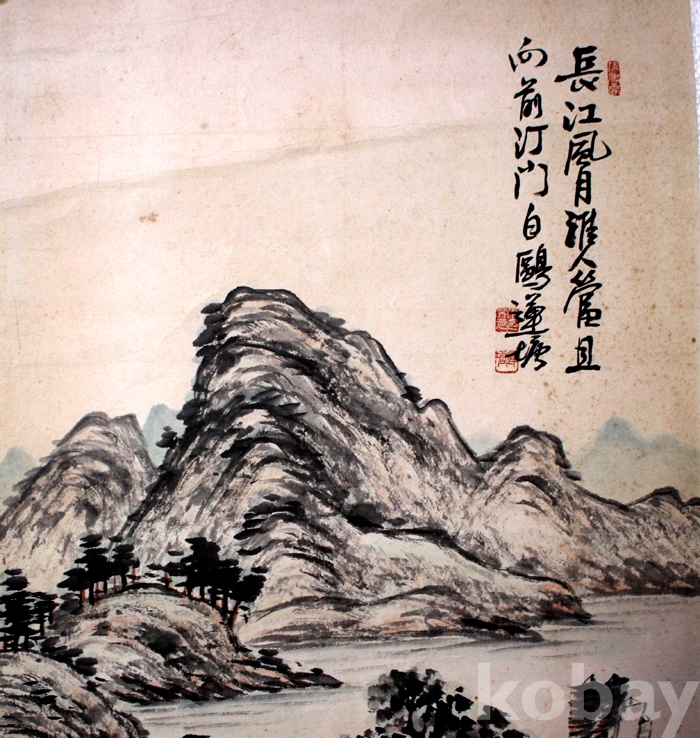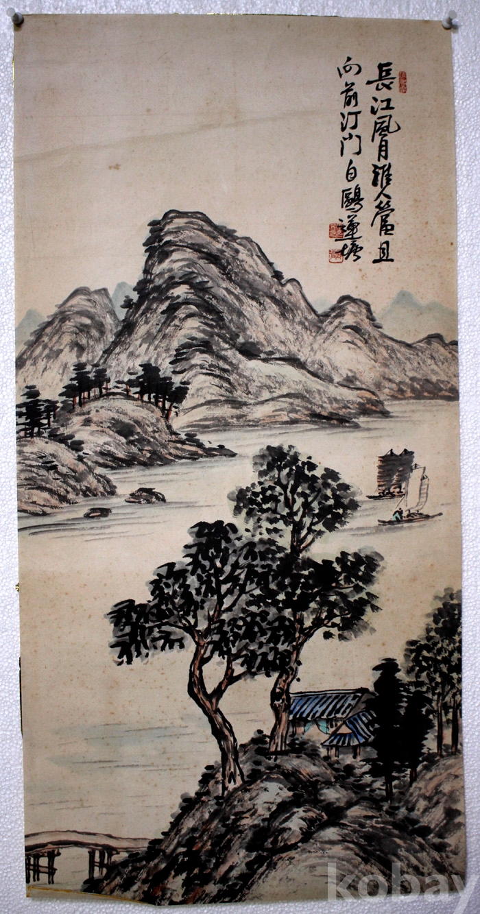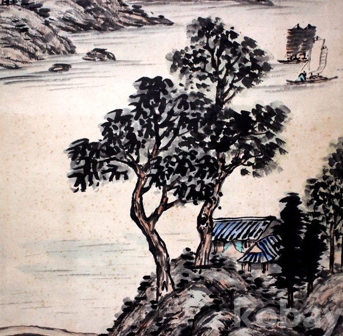 국전입선작가인 蓮塘(연당) 이계원의 작품 - 돗단배가 있는 강가의 여름 풍경