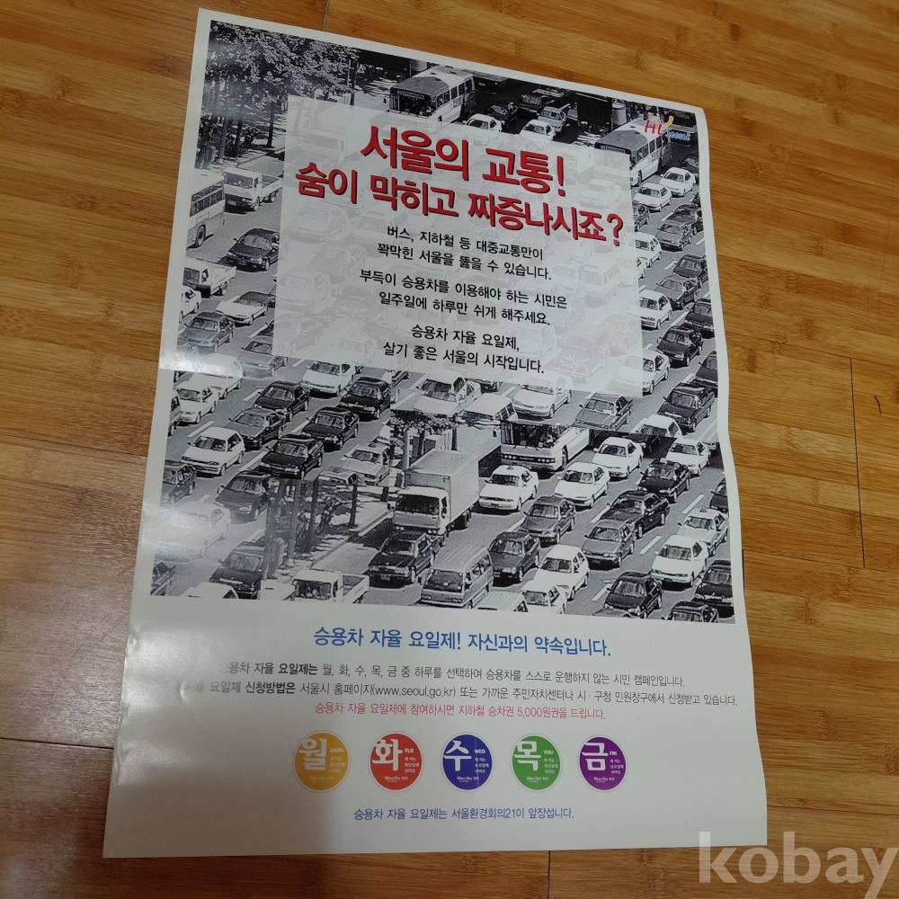 하이서울 승용차 요일제홍보 포스터 올려드립니다
