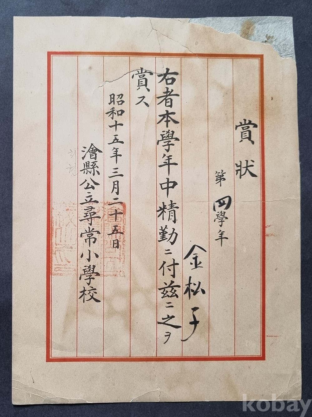 M-35 / (희귀자료) 일제강점기 "상장" (회현 공립심상소학교)