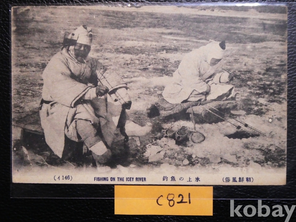▣근대한국엽서(진본): 겨울에 강에서 얼음낚시하는 모습/1매/역사자료, 일제시대, 일제강점기 사진엽서, 그림엽서, 회엽서, C821