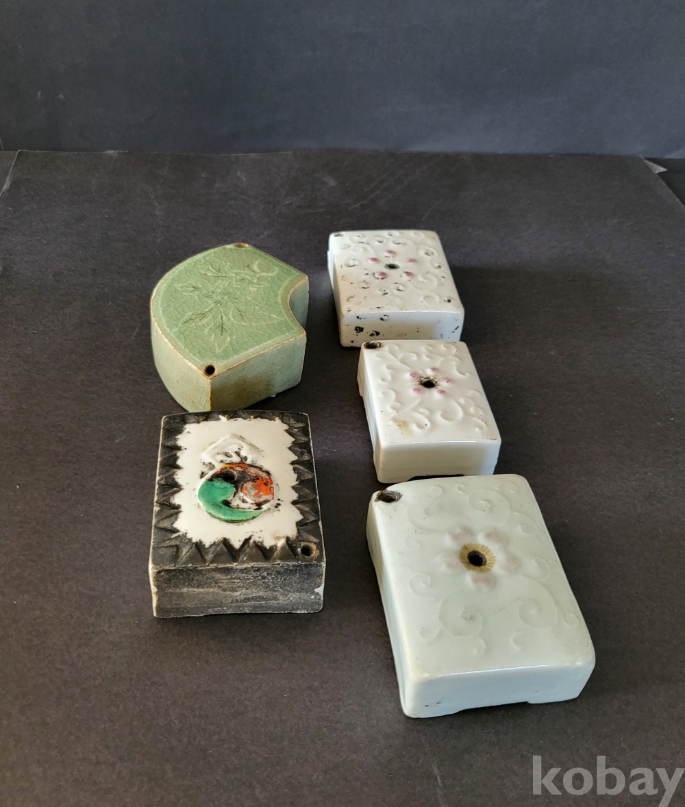 태극, 매화 문양 등 외사기 연적 5점 일괄 이며