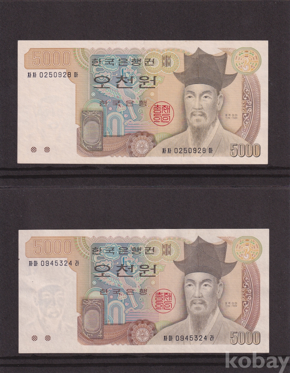 - 한국은행 1983년 3차 오천원 준미 0포인트 지폐- 2장 일괄