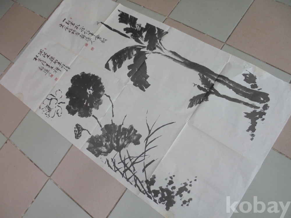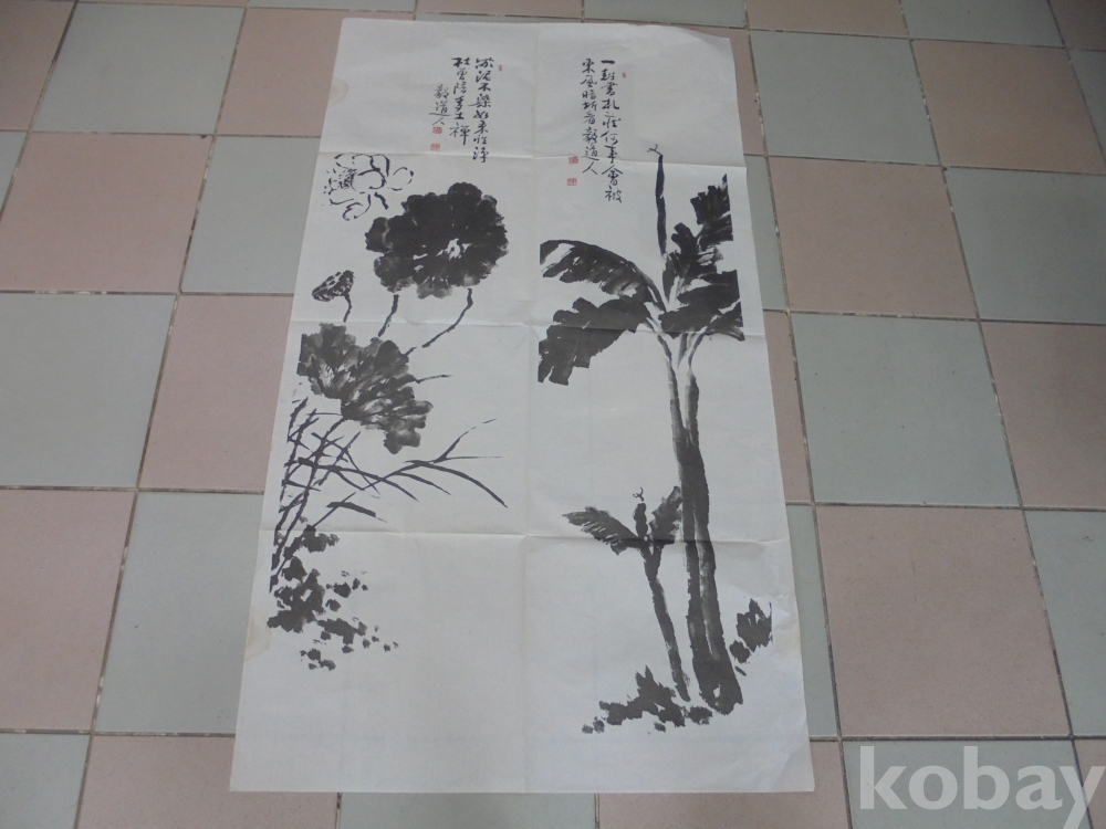 유명한 의도인 허백련의 묵화 전지로 자르면 2장나오는 영인본으로 보이는 허백련의 연화와 파초 묵화 전지그림