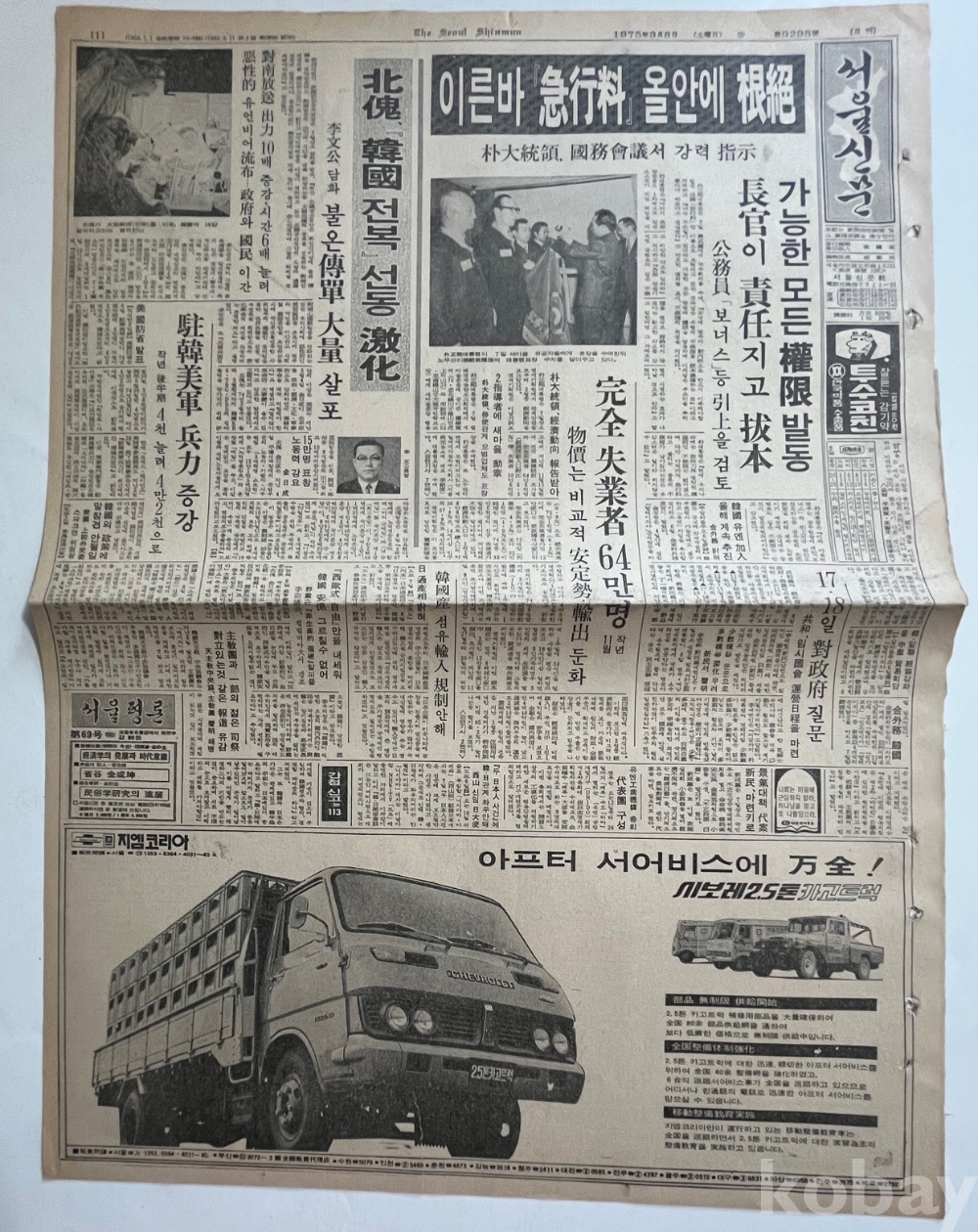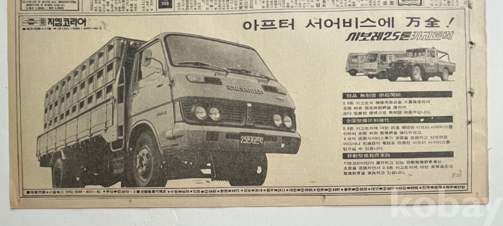 시보레 트럭 광고가 실린 서울신문 낱장입니다.