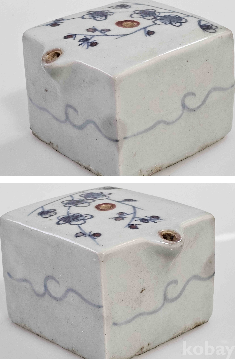 @상태: 연대감 좋은 연적03 철화청화백자 매화문 사각연적입니다.