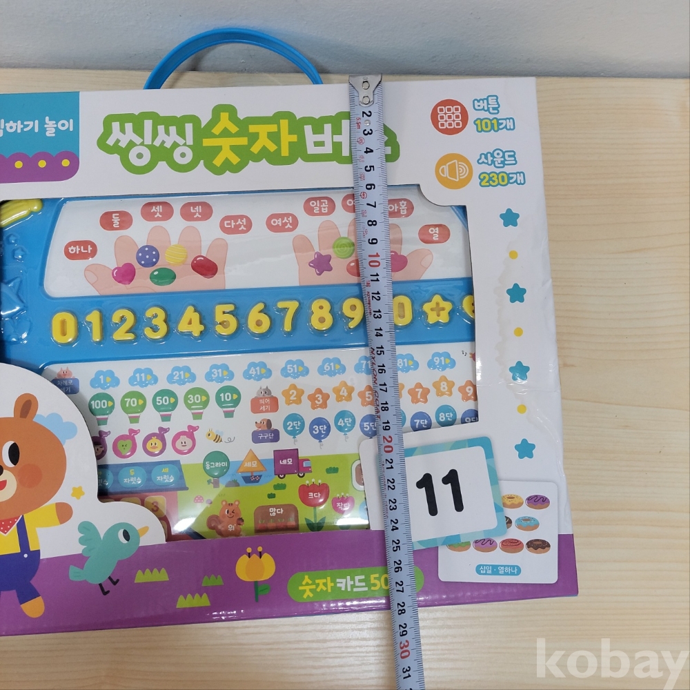 숫자 모양을 그대로 살린 볼록한 숫자 버튼, 위아래로 나뉘어진 알록달록한 그림 버튼 등 다양한 버튼이 모두 101개로 구성되어 있다. 101개의 버튼을 한번씩만 누르며 가지고 놀아도 나도 모르는 사이에 필수 수학 개념들이 머릿속에 쏙쏙 저장된다.