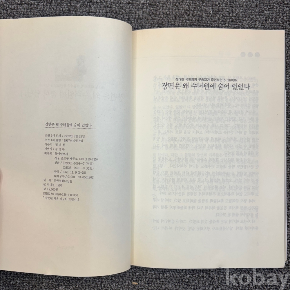 [한국현대사, 5.16, 제2공화국] 정대철 지음, <장면은 왜 수녀원에 숨어있었나> 동아일보사, 1997, p.344 , 중급(사진참조)