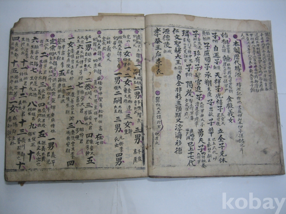 8. 내용 : 제목은 국조문과보(國朝文科譜)로 필사되어 있으며, 앞 부분에 조선왕실 족보인 본조역대선원(本朝歷代璿源) 내용 끝 부분에 조선의 특산품을 중국에 바치는 길을 정리해 놓은 중원진공노전리수(中原進貢路程里數), 일본에 가는 길을 안내한 일본국정도(日本國程道), 지금의 오끼나와에 가는 길을 정리해 놓은 유구국정도(琉球國程道)가 필사되어 있습니다.