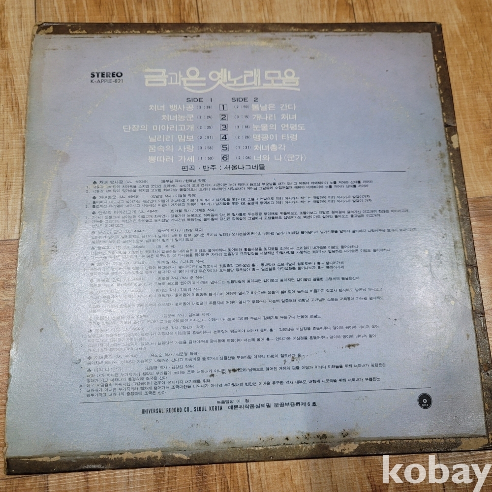 | 자켓상태 | EX : 약간의 마모, 모서리 찢김 존재 | 음반상태 | VG : 생활 기스 다수, 가벼운 노이즈 존재 | 발매정보 | 알수없음 | 가사지여부 | 무 |