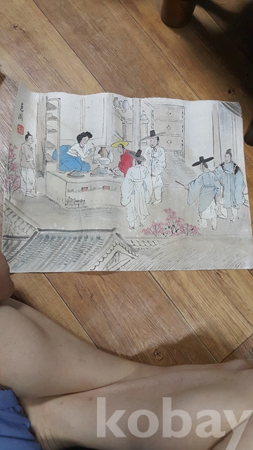 바-94.혜원 신윤복의의 주사거배 (한지닥종이에실체그린)
