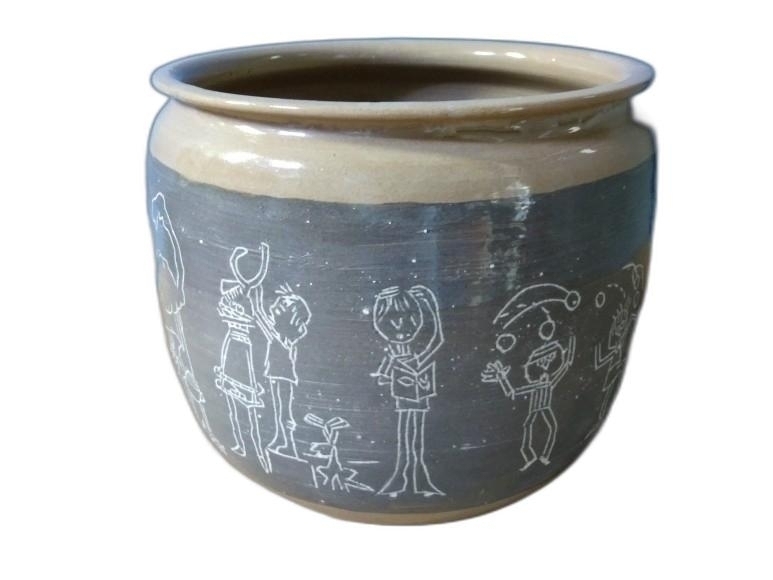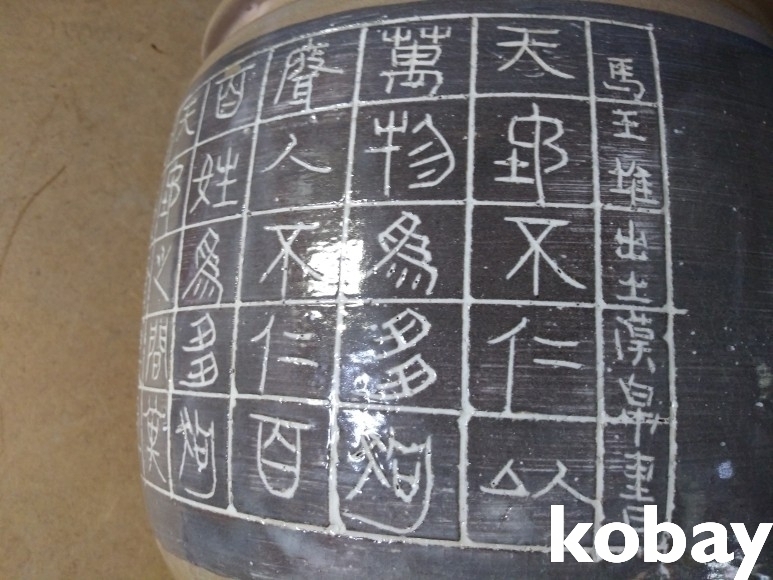 동화 같은 그림과 글씨가 음각되어 있는 도자기 입니다.