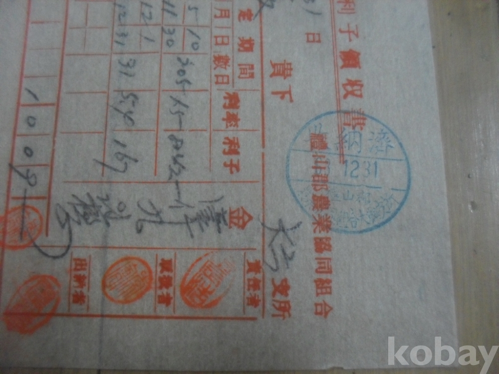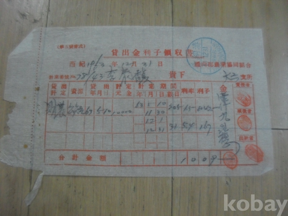 1229h)63년 예산군농업협동조합 대출금 이자 영수증.