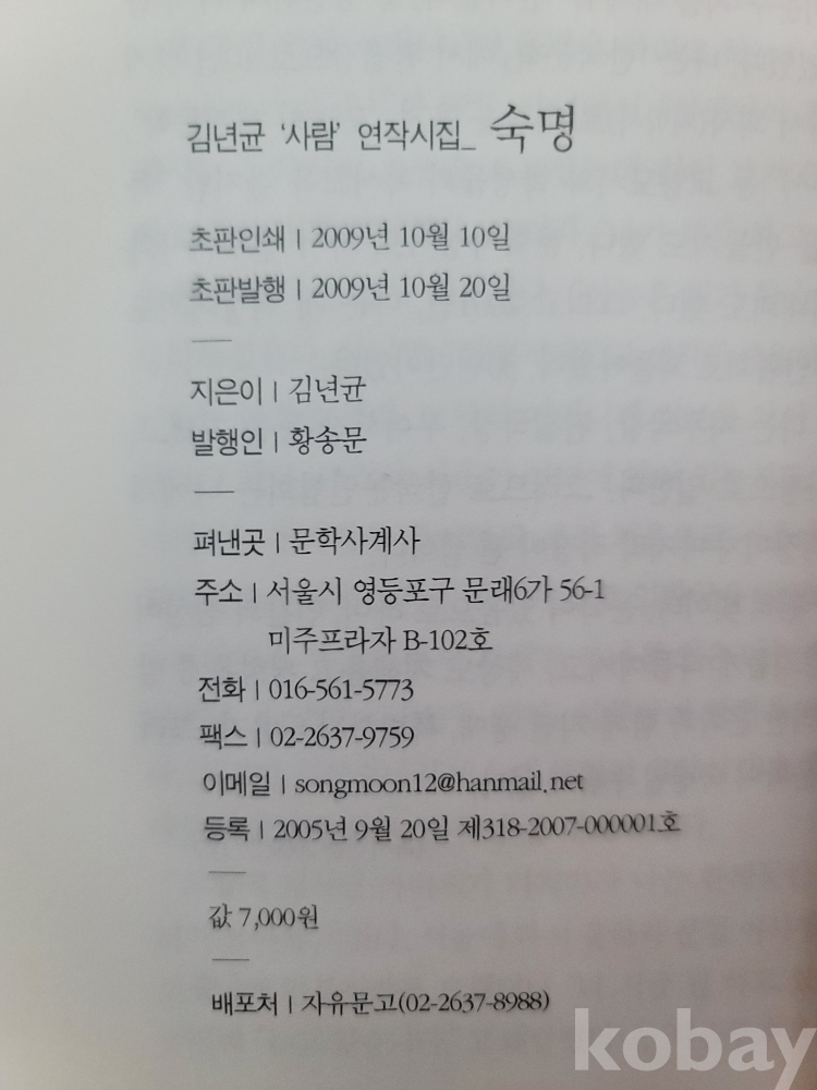 2009년 발간한 제12시집 『숙명』