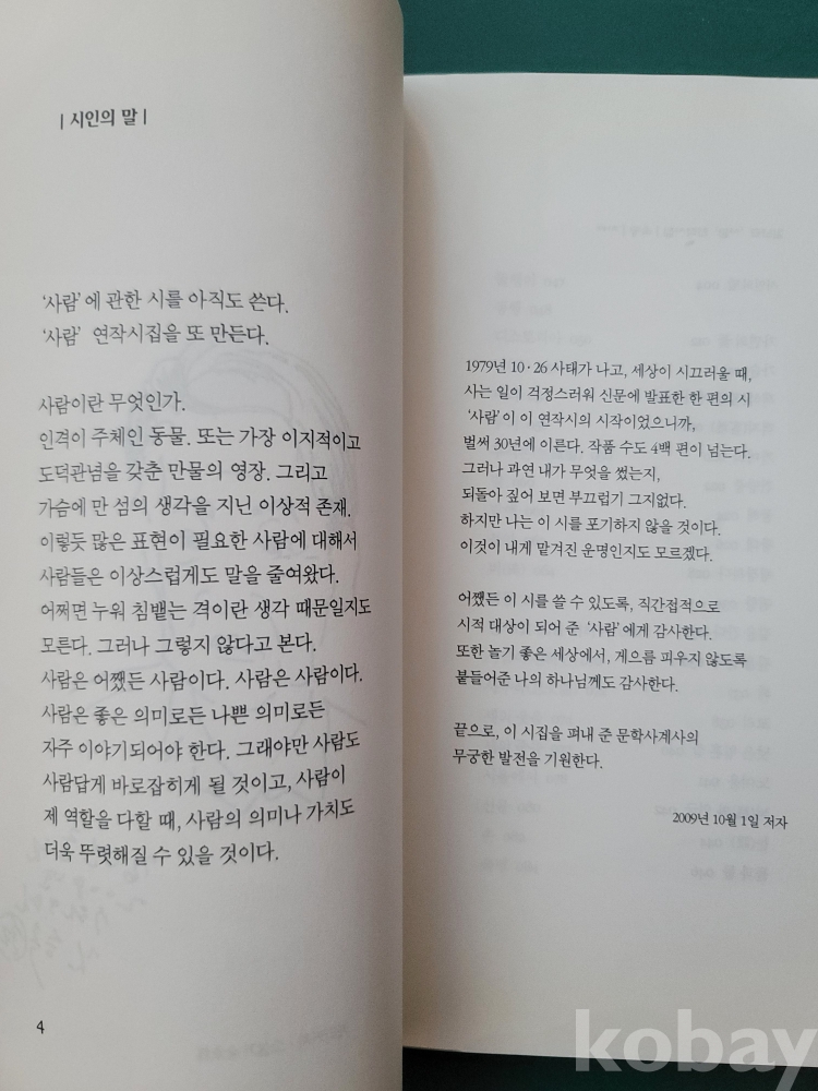 '사람' 연작시집 제5권으로 발행한 독특한 시집.