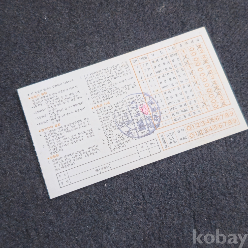(((프로야구자료/야구복권/호돌이))) 1985년 야구복권 (제10회) (해태 방수원)