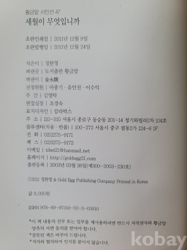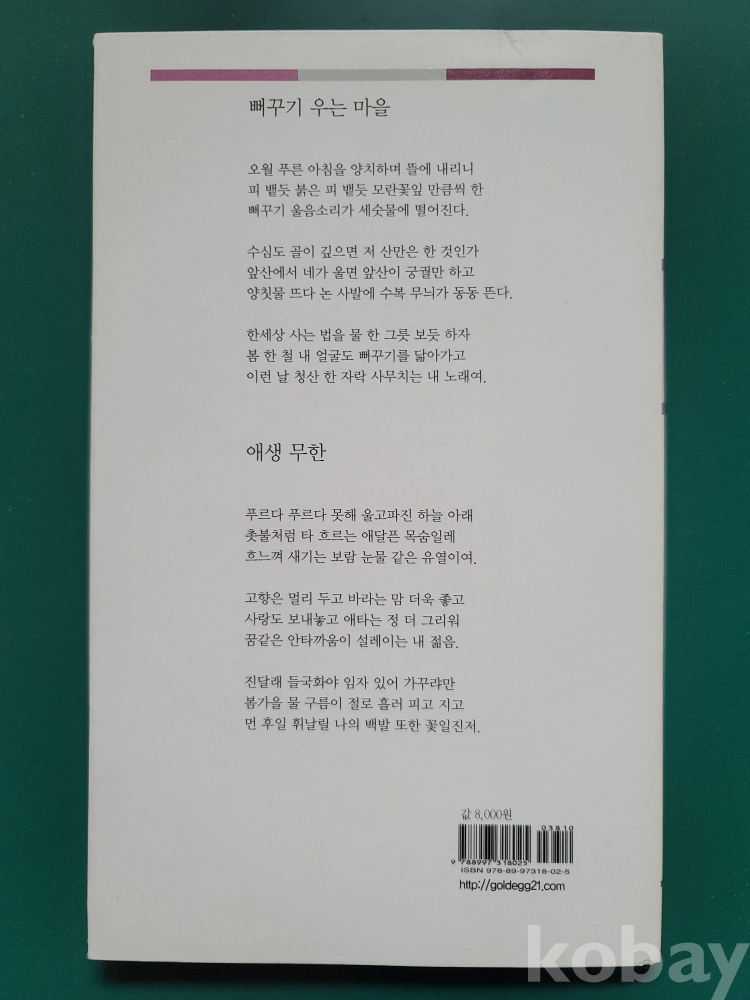 도서출판 '황금알'에서 '황금알 시인선[47]'으로 발행.