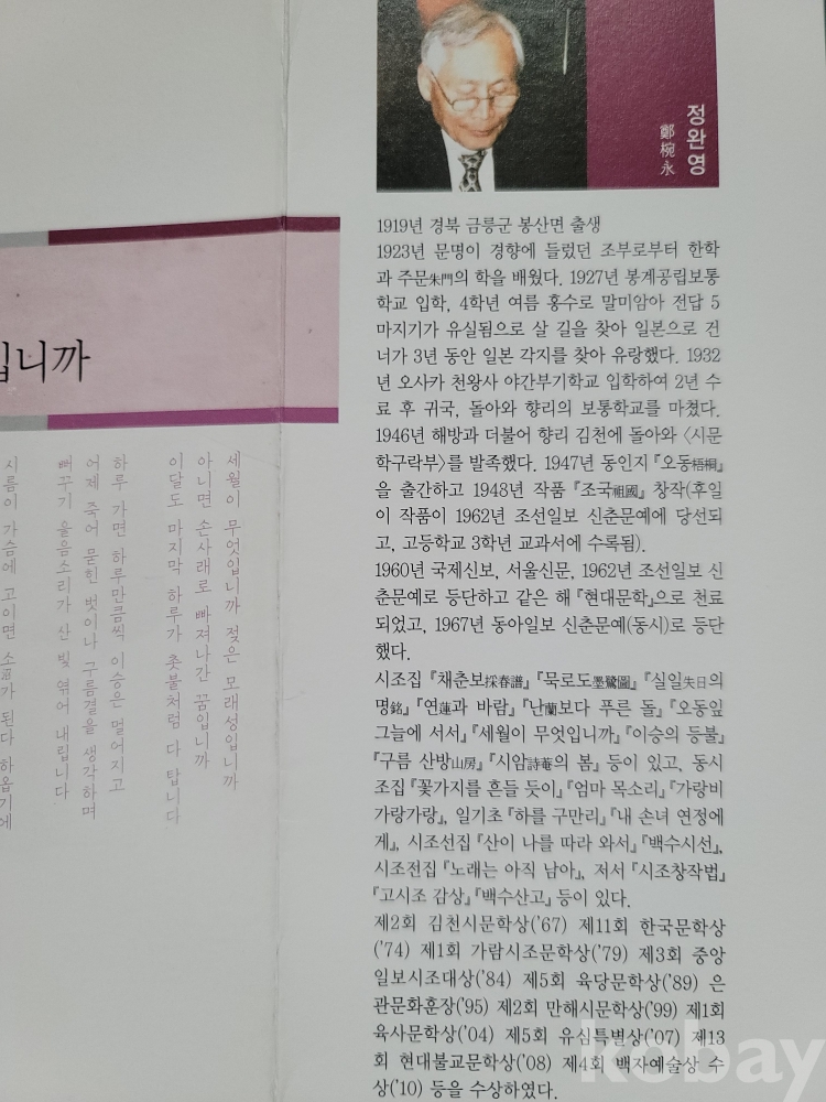 朴在森•李泰極 시인 등과 함께 1960년대를 대표하는 시조 시인.