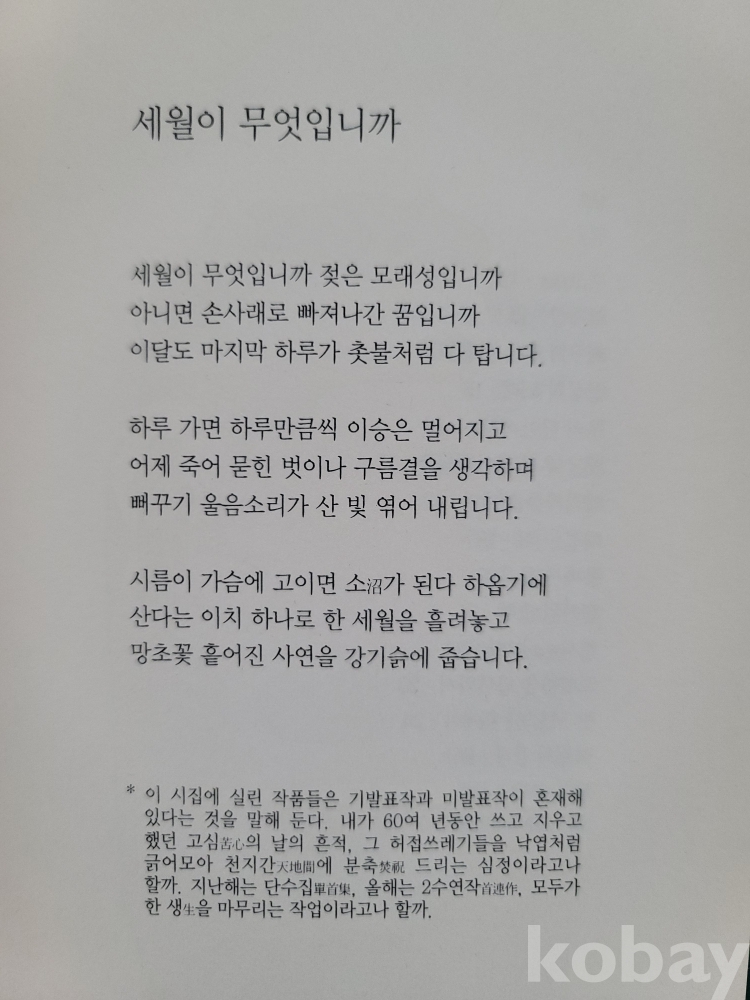 2011년 발간한 시조선집 『세월이 무엇입니까』
