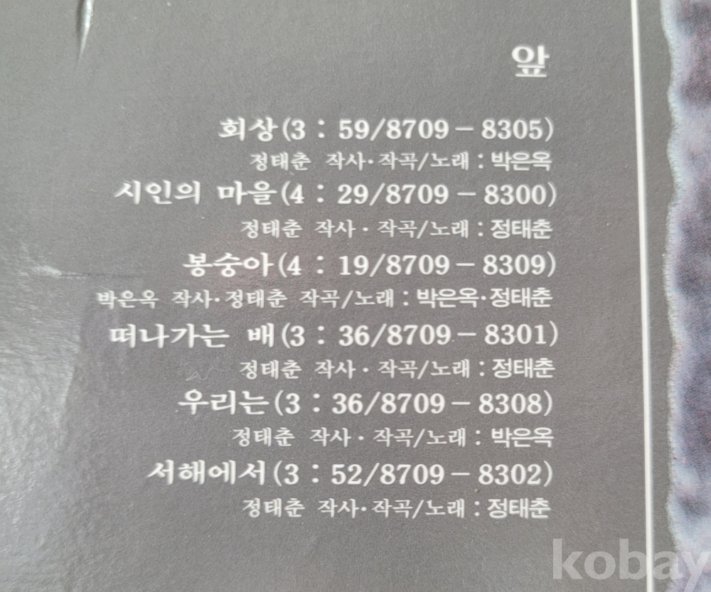 자켓의찢김은없으며 하단테이핑과 음반에 스크레치는 보입니다. 오래전 발매된 음반으로 특유의지직거림과 튐이 있을수있습니다.