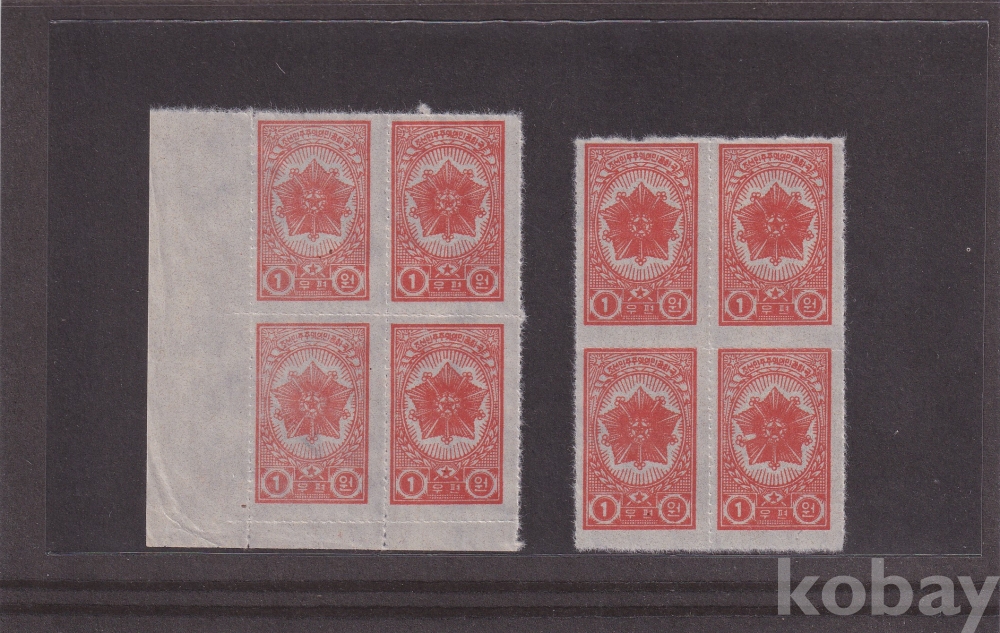 [윗동네 미사용 우표 모음展] - 국기 훈장 1원 블럭 2장 일괄