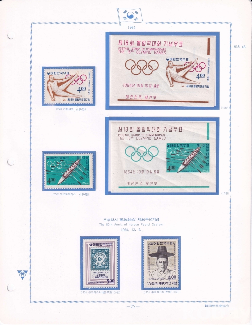 - 한국우표앨범 모음展 - 우정창시 제80주년 기념 우표 포함 6종(1964년)