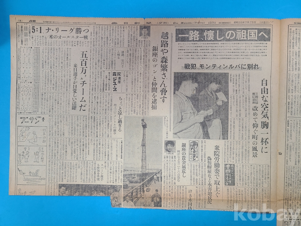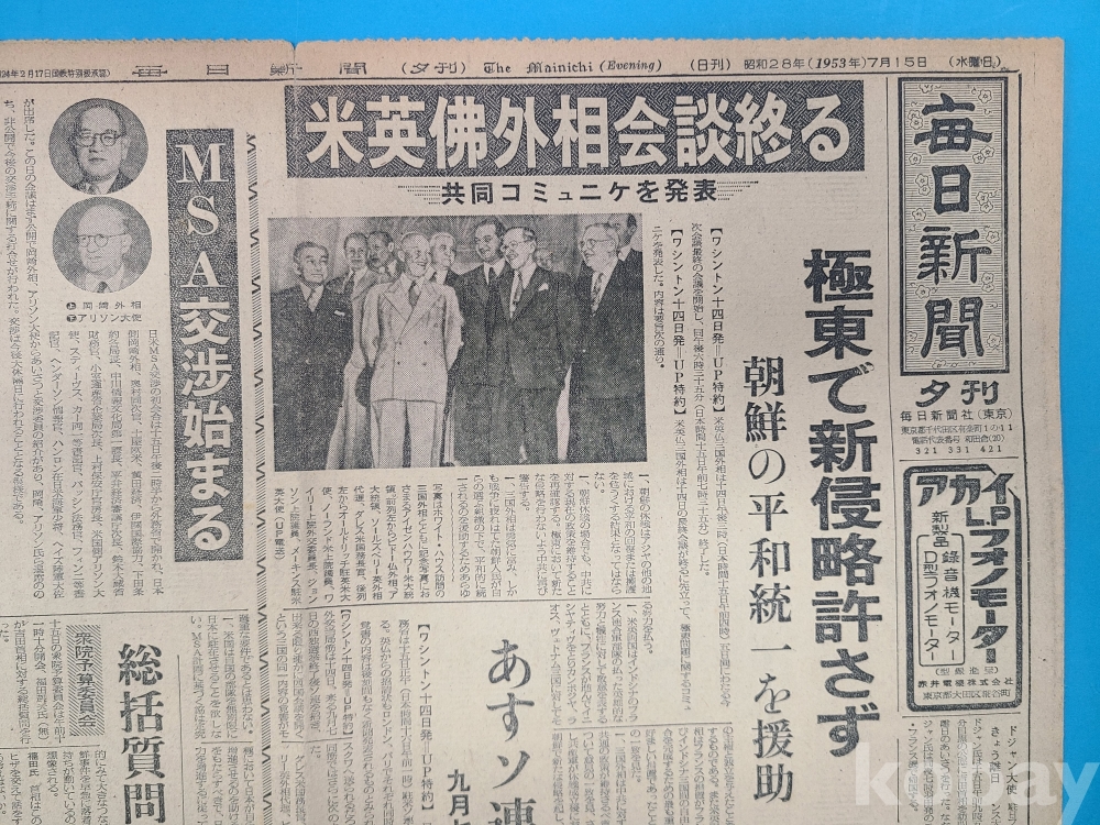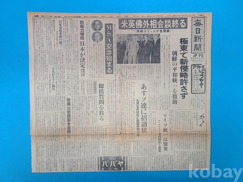 **** 6.25전쟁 관련기사가 실린 일본발행 신문 [매일신문]/1953.7.24./하단부 잘렸음