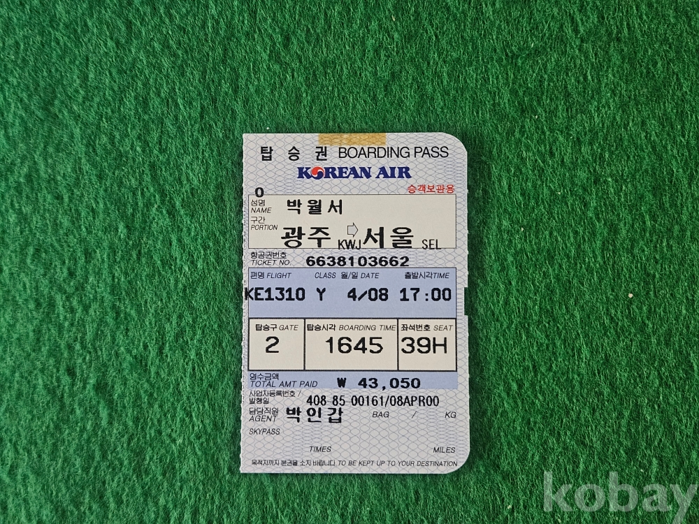 - 대한항공 탑승권 (승객보관용) " 광주 - 서울 "