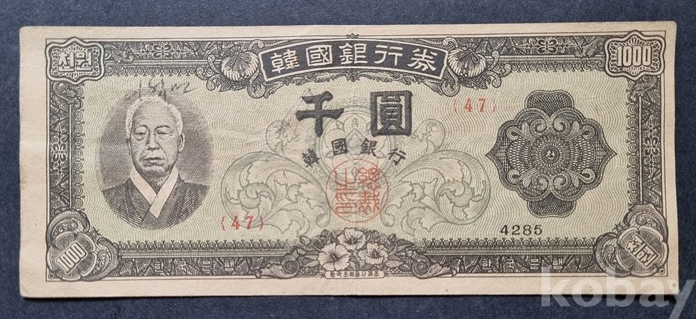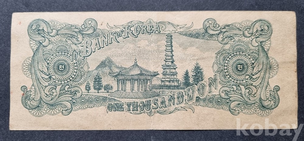 X-21 / 한국은행권 옛날 지폐 죄이박 "천원" (이승만 초상, 파고다 공원) 1952.10.10~1953.2.17