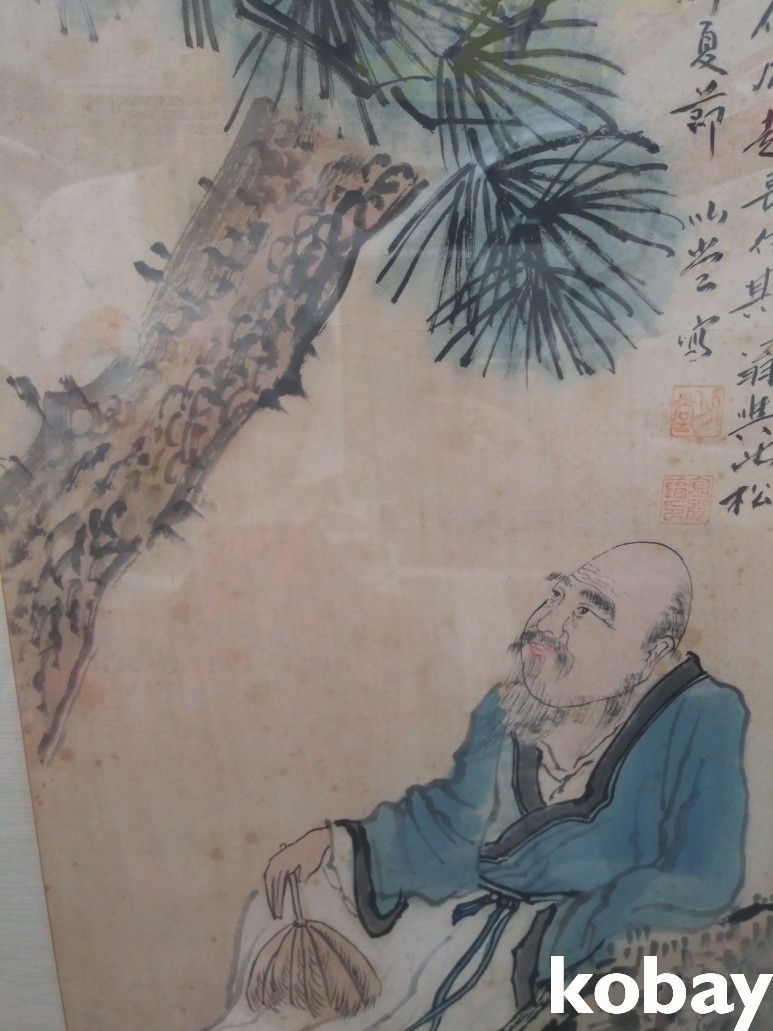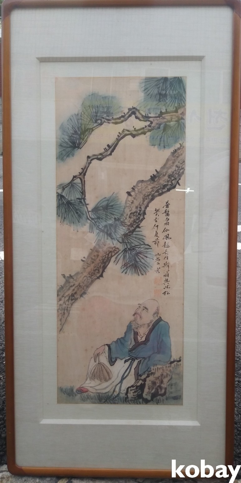 비단 천에 소나무 아래 신선이 한가로이 쉬는 모습 입니다.