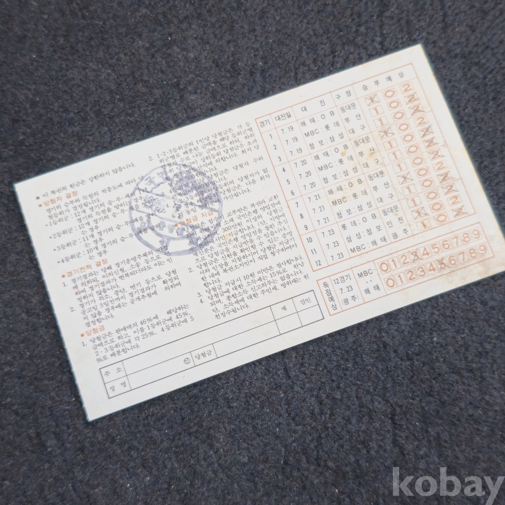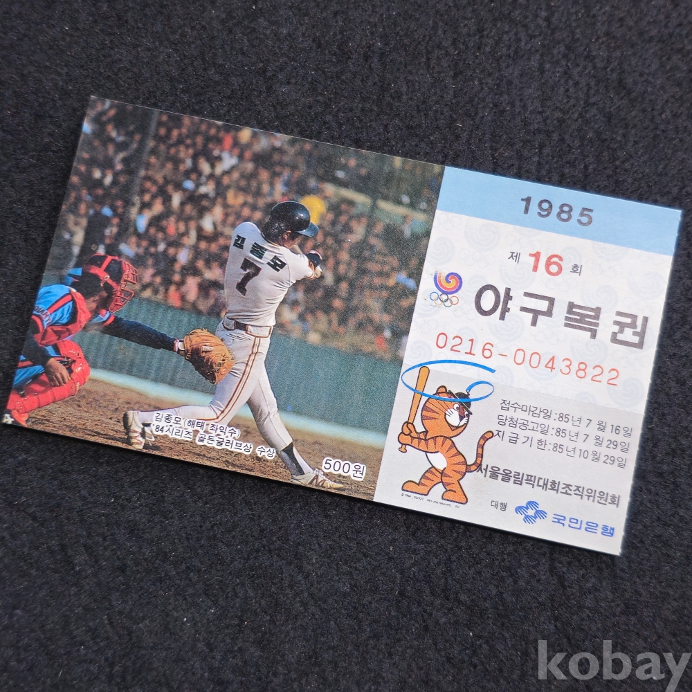(((프로야구자료/야구복권/호돌이))) 1985년 야구복권 (제16회) (해태 김종모)