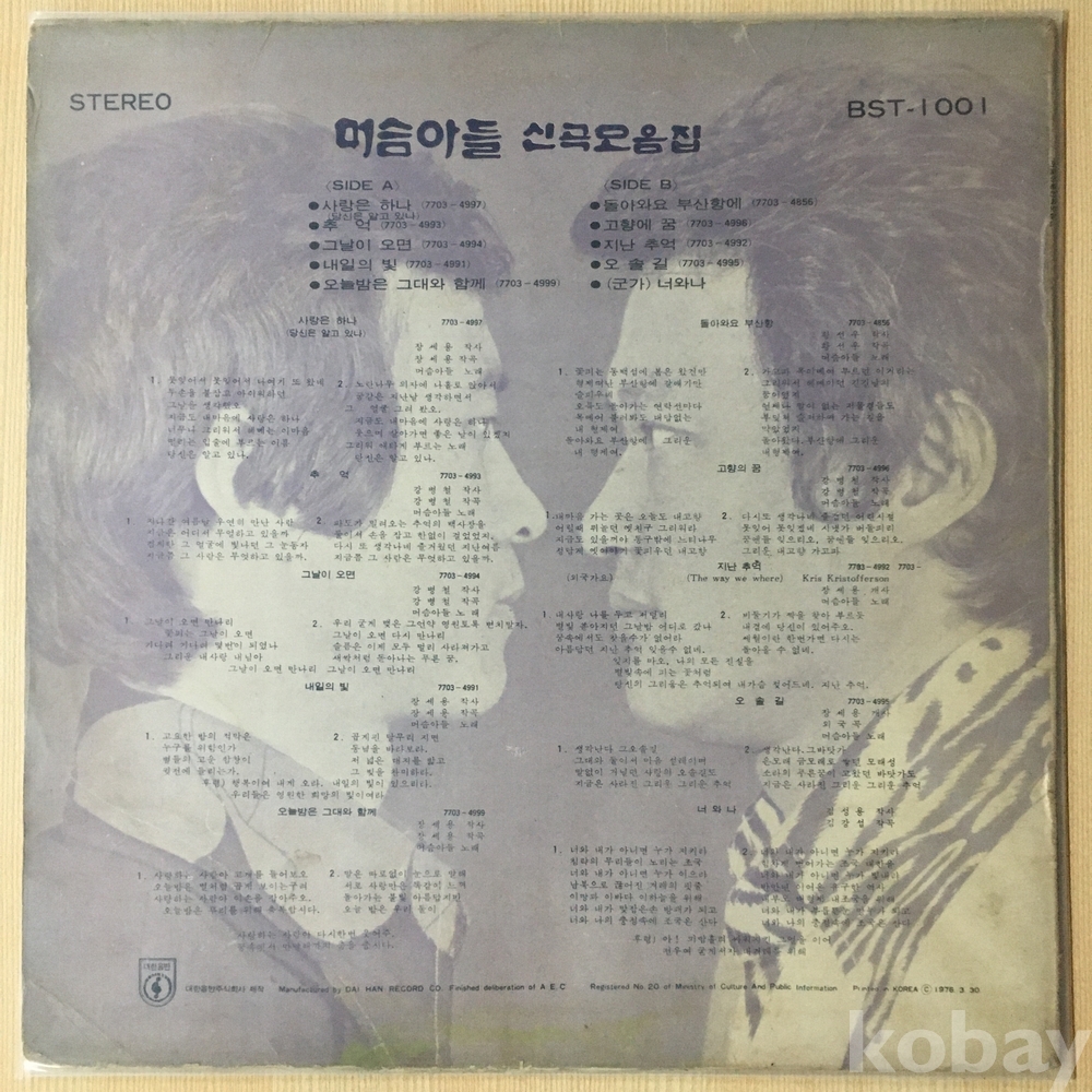 . 가요음반 대부분은 휘어짐이나 손상을 방지하기 위해 무지싱글자킷을 하나 더 사용하여 보관되었던 음반들입니다.
