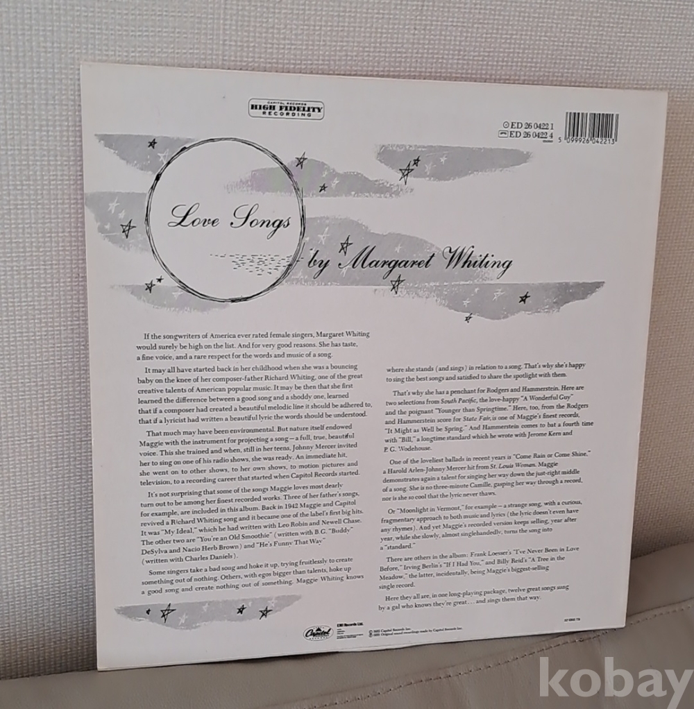 이미지는 미국의 가수 마거릿 휘팅(Margaret Whiting)의 앨범 'Love Songs by Margaret Whiting'의 표지입니다